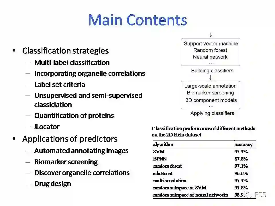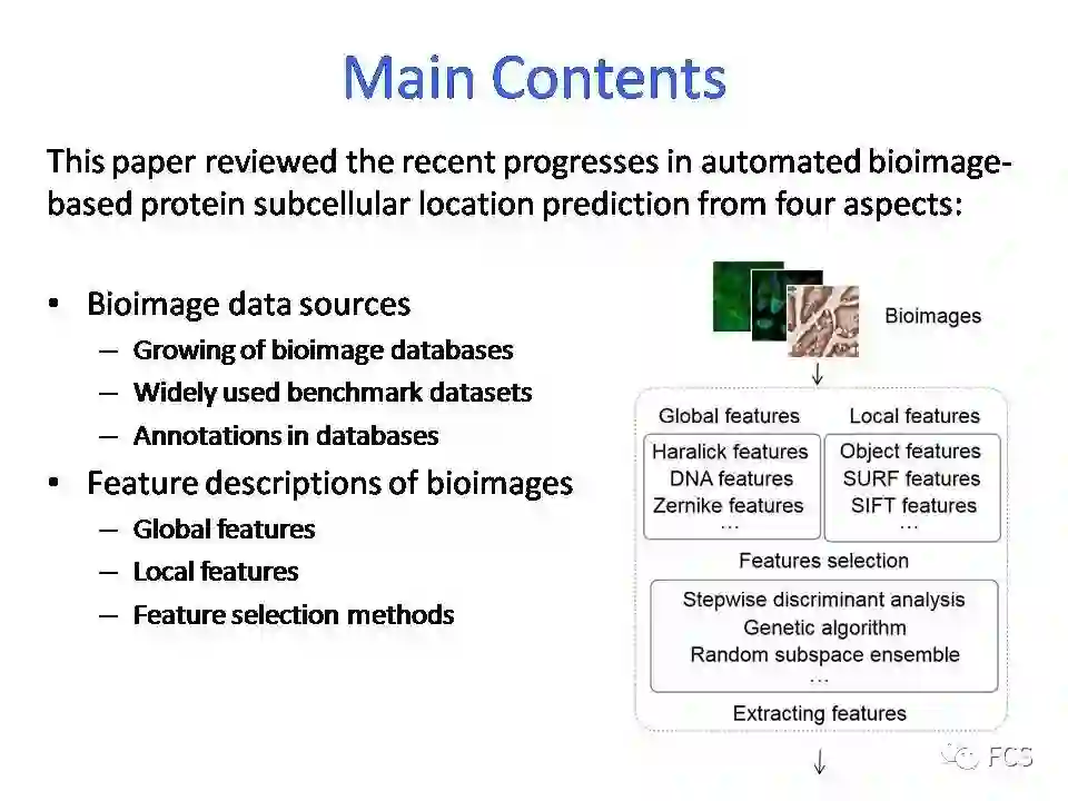 蛋白质的亚细胞定位可以为推断其在细胞中的功能和结构提供关键提示。随着最近分子成像技术的突破,2D生物图像在蛋白质亚细胞定位模式自动分析中的应用越来越普遍。与广泛使用的蛋白质一维氨基酸序列数据相比,蛋白质分布的图像更直观、更可解释,使图像在检测蛋白质易位和蛋白质定量等揭示蛋白质动态特性的应用中成为更好的选择。