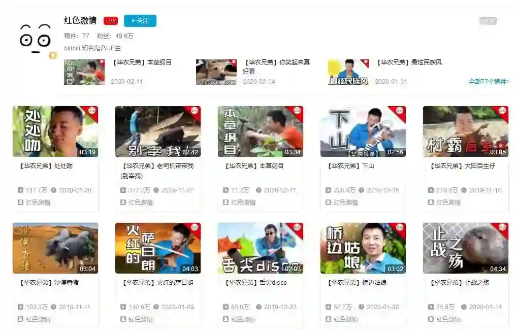 UP主红色激情,专职制作华农兄弟鬼畜,播放量和华农视频相差不多
