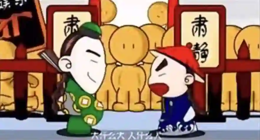 比如2003年的《九品芝麻官RAP》,选当时流行的Flash动画(可能是末期?)形式,用被年轻人追捧的周星驰、无厘头、“大什么大,人什么人”等经典台词做梗,最后配以强节奏感、高重复来营造喜感、洗脑。