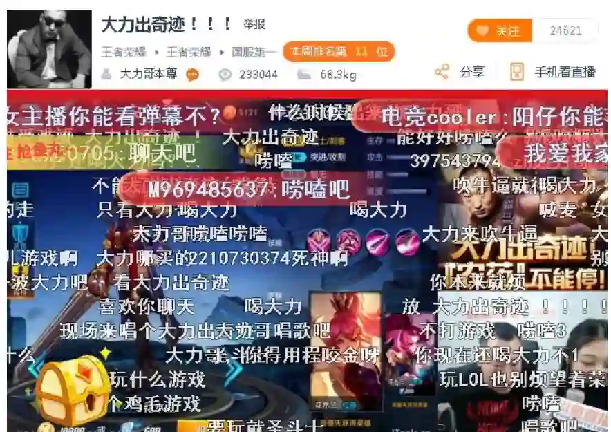 同样的,鬼畜明星也能因此获益,比如2014年入狱的“大力哥”,在2017年刑满释放后立即被工会签约,在斗鱼直播《王者荣耀》,首播观众数在30万左右。