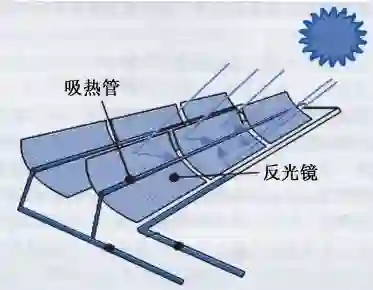 近年来,在太阳能热发电技术上,新出现的理念是:用一种新型的"陈式定日镜 + 小塔支撑的集热面",来克服已走向产业化的"槽式"电站具有的严重热量损失的重大缺点. 图2是槽式电站的示意图.