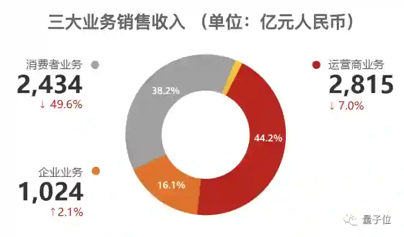 而在2022年上半年,华为运营商业务收入为1427亿元人民币,占总收入的47.3%,在三大业务中继续居首。
