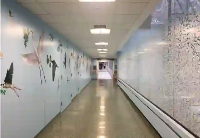 21日,在盛诺一家客服的陪同下,我们第一次见到美国最好的医院是什么样子。一句话,就不像医院的样子,很漂亮,干净得不像话,没有刺鼻的药水味,里里外外看不到多少人,候诊区竟然有电视、地毯和鱼缸,还有各种吃的喝的随便自取,搞得我俩有点像像刘姥姥进大观园,看到什么都感叹一番。