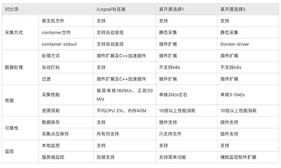 对于可观测数据的采集,有很多开源的采集器,例如Logstash、Fluentd、Filebeats等。这些采集器的功能非常丰富,但在性能、稳定性、管控能力等关键特性方面iLogtail因其独特设计而具备优势。