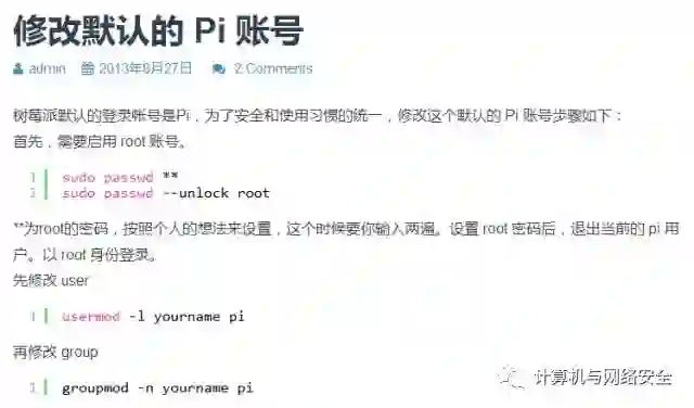 原来这个用户名是树莓派的默认用户名,那么我在机器上创建了一个用户名为pi的帐号,并且设置对应的弱口令,引诱攻击者进入蜜罐: