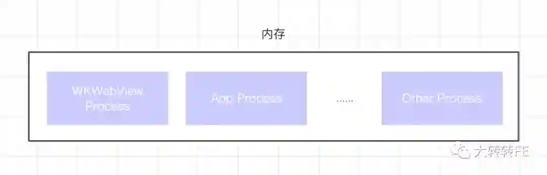 上面有提到性能的提升,为什么 app 接入 WKWebView 之后,相对比 UIWebView 内存占用小那么多,主要是因为网页的载入和渲染这些耗内存和性能的过程都是由 WKWebView 进程去实现的(WKWebView是独立于app的进程)。如下图: