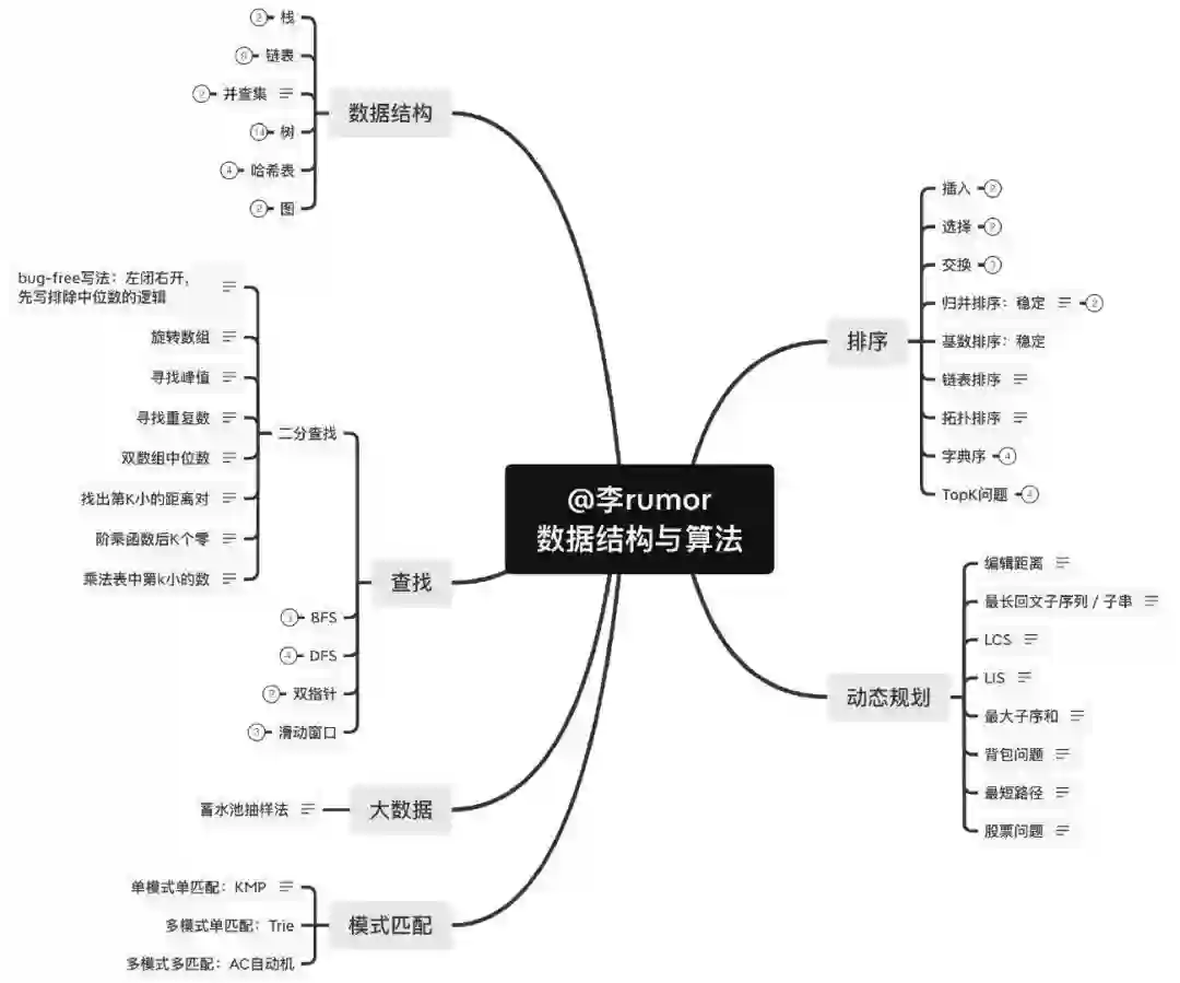 就拿其中的数据结构节点来说,rumor有体系的总结了各种考点已经对应的leetcode题目,尤其是各种高频hard变种题~