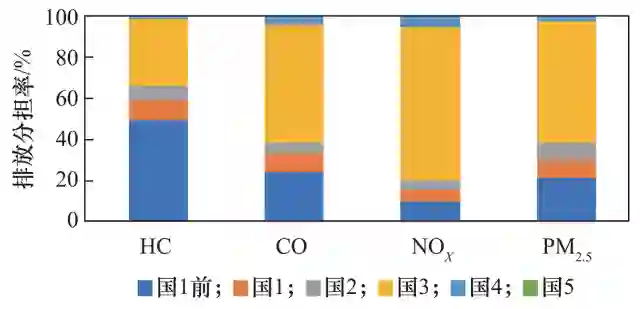 图 2 不同车型的污染物排放分担率