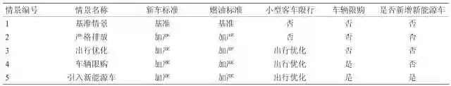 表 1 各排放控制情景的控制措施