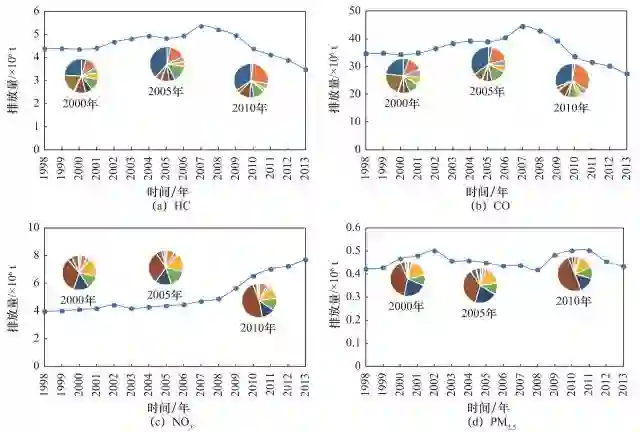 图 5 我国机动车污染物的排放历史趋势