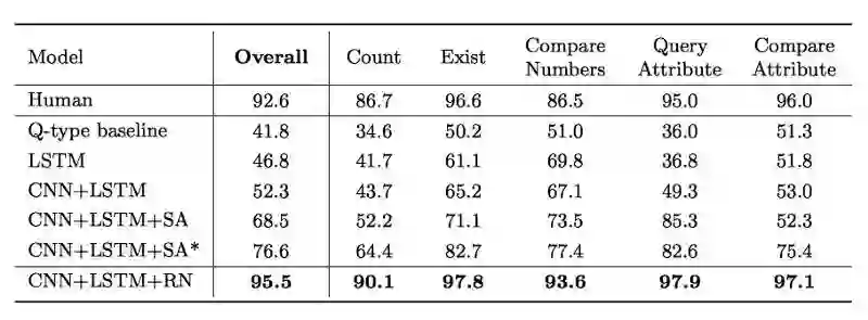 作者们指出,其他系统在准确性方面远远落后于他们自己的模型,这是因为关系网络旨在捕获关系。