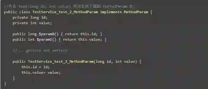MethodParam 才是 Turbo 性能炸裂的真正原因。其基本原理是利用 ClassGeneration 对每个 Method 都生成一个 MethodParam 类,用于对方法参数的封装。这样做的好处有: