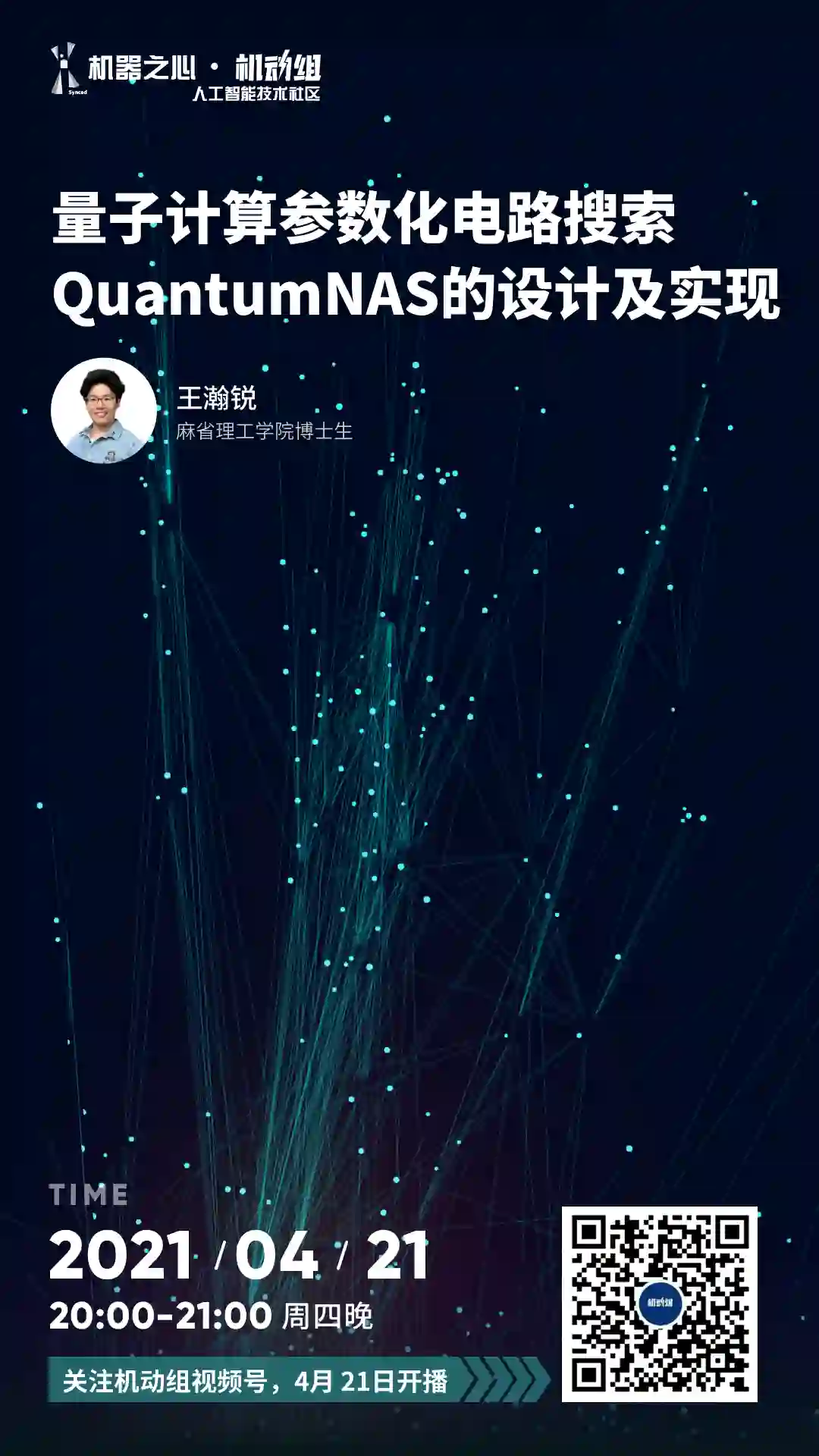 为了帮助读者更好的了解这背后的技术,在 4 月 21 日晚 20:00-21:00 的技术分享中,机器之心机动组将以「量子计算参数化电路搜索 QuantumNAS 的设计及实现」为主题,邀请 MIT 博士生王瀚锐,为大家解密量子噪声背后的相关技术。