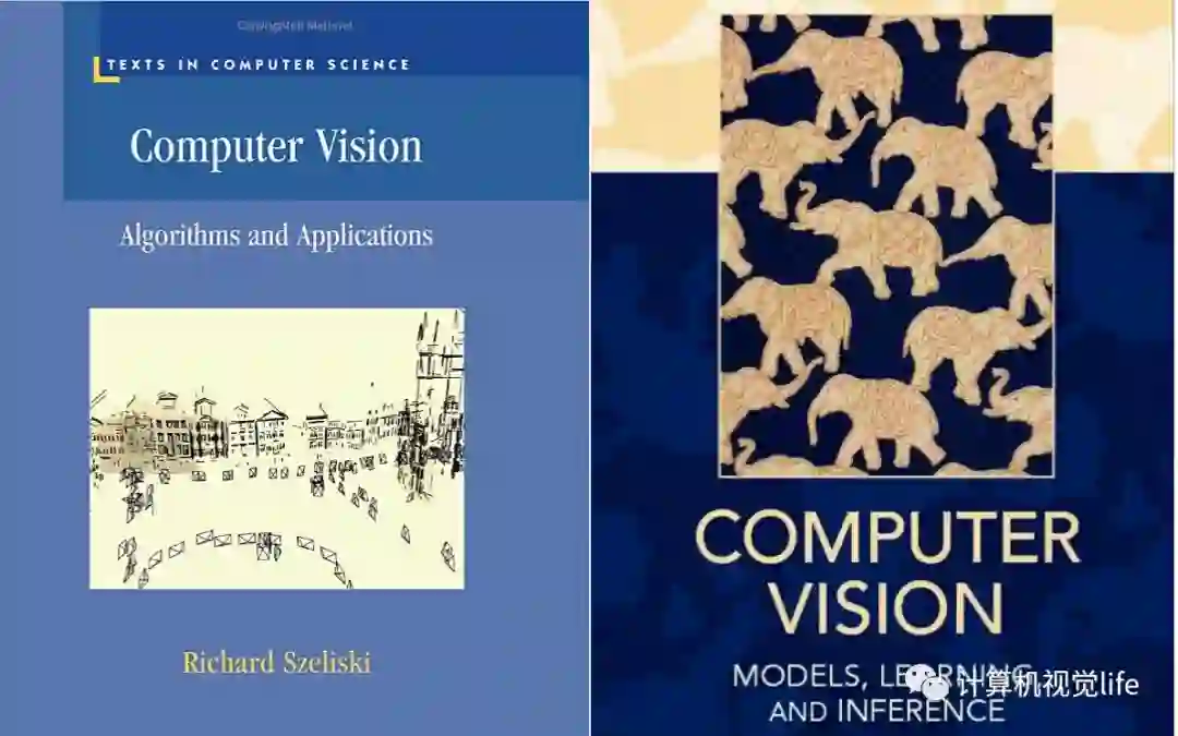 同样给你两种选择,当然两个都选更佳。一本书是2010年出版的美国华盛顿大学Richard Szeliski写的《Computer Vision: Algorithms and Application》;一本是2012年出版的,加拿大多伦多大学Simon J.D. Prince写的《Computer Vision: Algorithms and Applications》。两本书侧重点不同,前者侧重视觉和几何知识,后者侧重机器学习模型。当然两本书也有互相交叉的部分。虽然都有中文版,但是如果有一定的英语阅读基础,推荐看英文原版(见文末获取方式)。老外写的书,图和示例还是挺丰富的,比较利于 理解。