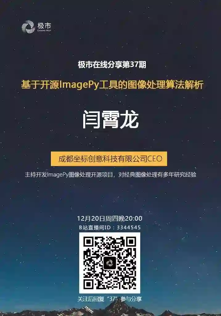 关注“极市平台”公众号,回复“37”或“闫霄龙”即可获取免费直播链接。加入专业CV交流群请填写表单