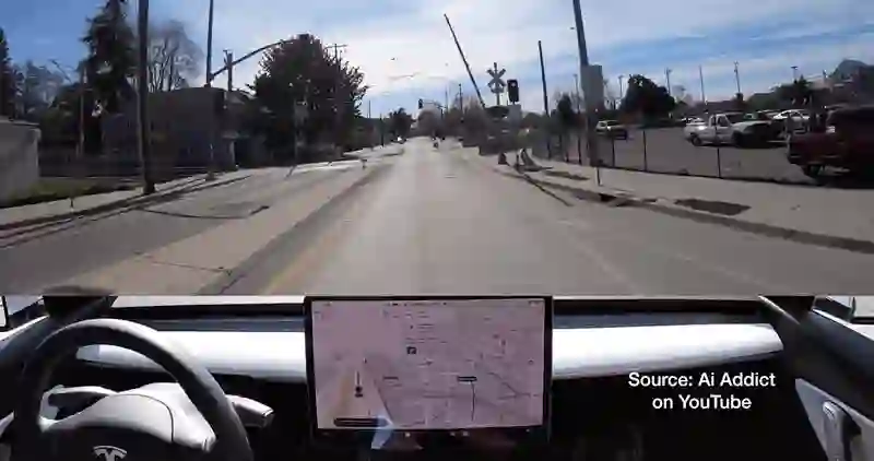 和大多数半路出家的 UP 主一样,AI Addict 视频并没有太复杂的剪辑和特效,都是 Bernal 和自己朋友开着他的特斯拉在硅谷开车,使用的是最新发布的 FSD Beta 软件公测版本。