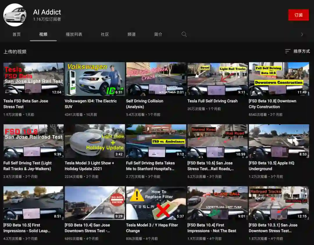 AI Addict 频道,最近已不止是评测特斯拉:https://www.youtube.com/c/AIAddict