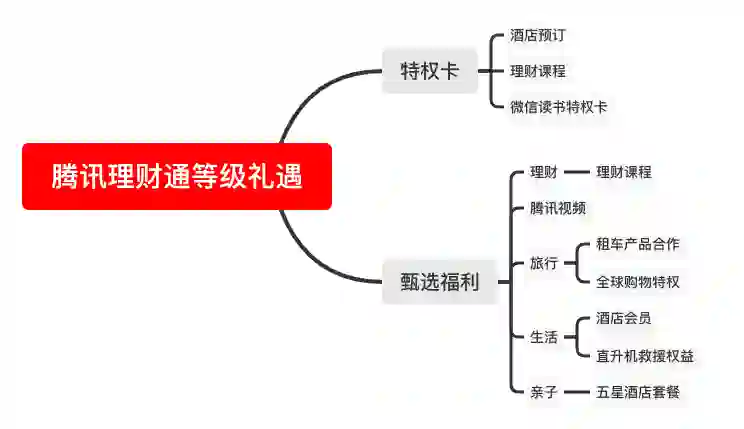 从业务闭环角度看:腾讯理财通会员权益为用户提供了流畅的资金流转权益,用户就可以更加放心的在产品内投资理财。同时理财通的等级礼遇主要围绕白金以上会员提供高端服务类权益,与会员权益形成业务闭环,促进用户的活跃和留存。
