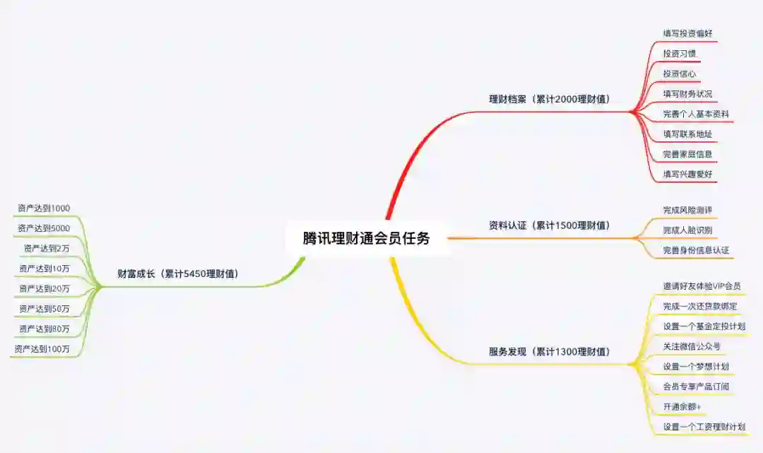 腾讯理财通的主要运营动作包括促进用户购买理财、激励用户完善个人信息。腾讯理财通的会员任务多达27个,收集用户信息的任务占到1/3,可见完善用户画像为产品的主要战略。