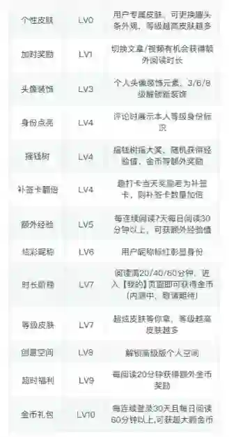 下图是趣头条10级会员的权益,可以看到权益大多数为荣誉勋章类虚拟奖励,企业几乎不需要付出成本。