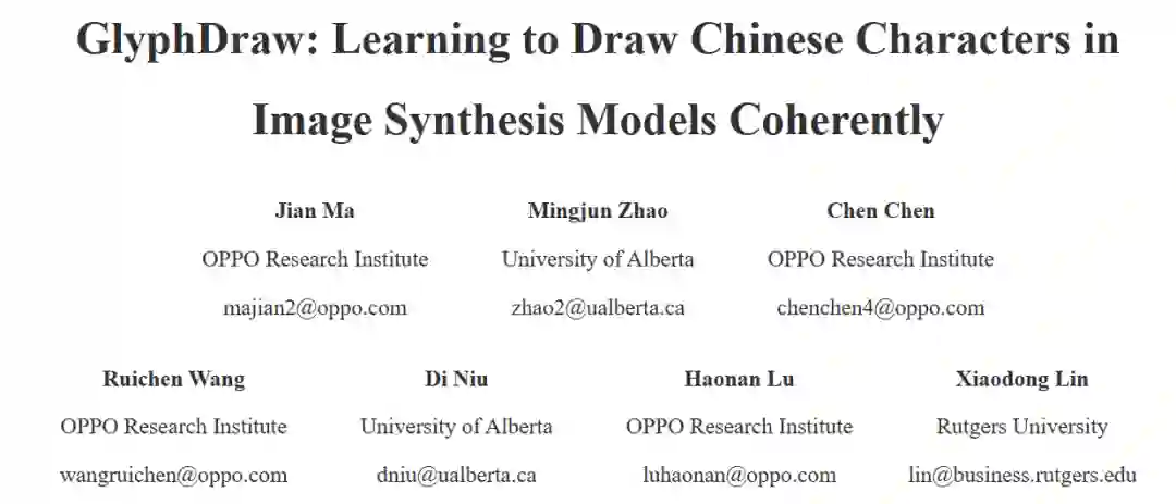 该研究提出了首个汉字图像生成框架 GlyphDraw,其中利用一些辅助信息,包括汉字字形和位置在整个生成过程中提供细粒度指导,从而使汉字图像高质量无缝嵌入到图像中;