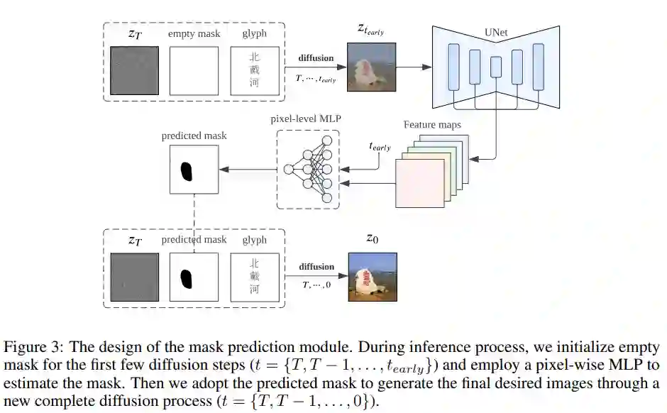 在自然图像背景中嵌入字符还需要考虑一个关键问题,那就是在避免影响相邻自然图像像素的同时,还要精确地控制文本像素的生成。为了在自然图像上呈现完美的汉字,作者精心设计了两个集成到扩散合成模型中的关键组件,即位置控制和字形控制。