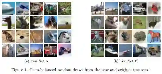 在论文 Do CIFAR-10 Classifiers Generalize to CIFAR-10? 中,研究者们通过在 CIFAR-10 上建立了一个新的测试集,来研究此问题。为此,他们解析标注了来自 Tiny Images 库的图像,在最初的数据采集过程也是如此。