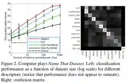 如果图像数据集确实能够代表来自自然世界的真实图像,就不应能够分辨出某个特定图像是来自于哪个数据集的。