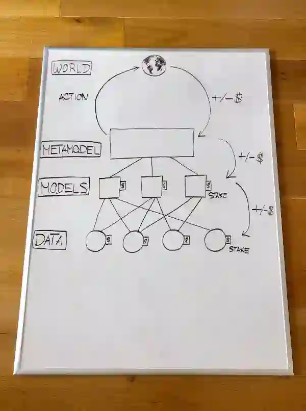总而言之,这样一个迷人市场的最终状态会是参与者彼此共享同一个元模型,它按数据提供者、建模人员的智能贡献比例分配所有权。这个模型将被标记化,并随着时间的推移向“股民”分发“股息”,甚至可以被全体“股东”支配。这是一种互相拥有的蜂巢式思维。