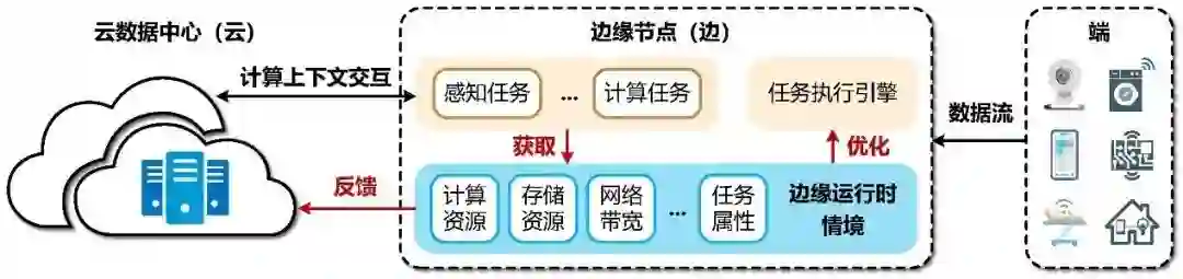 “边缘运行时情境”指边缘节点在任务运行时的上下文环境,在“云-边”协同计算模式下,为边缘计算在配置和部署方面的自适应优化提供了凭据。