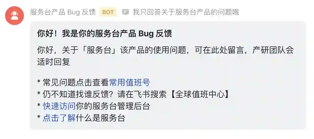 对于未来,飞书也在努力适配更多场景,面向企业内部、帮助员工解决问题的「服务台」就是很好的例子。对于传统新人入职、跨部门交流时免不了做「十万个为什么」的情况,服务台智能 bot + 人工工单的解决方案为字节跳动内部节省了大量人力物力。目前,字节跳动内部根据不同场景设立了大量服务台,让更多问题可以通过简单引导解决。对此,飞书表示服务台会长期免费提供企业内的服务台建设能力。他们认为,办公套件应该提供这样的提效工具给每个企业,飞书未来也会在智能匹配能力,客服服务效率方面持续迭代,做到业内领先。