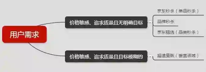 京东秒杀(单品秒杀)、品牌秒杀、京东精选(品类秒杀),满足了用户“价格敏感、追求质量且无明确目标”的购物需求。