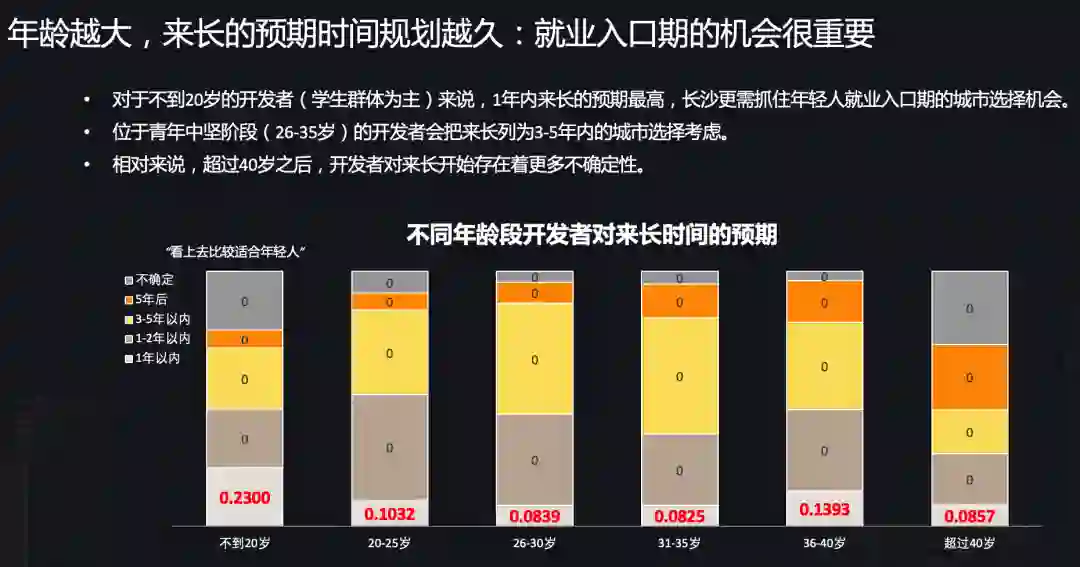年龄也是影响开发者来长沙发展的重要因素,报告显示: