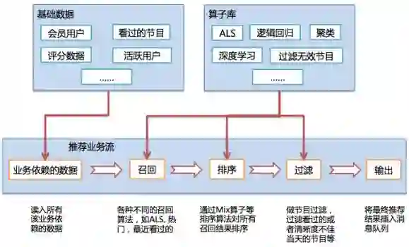 下图是作者公司相似影片推荐算法的一个简化版业务流向图,供大家与上面的模块对照参考: