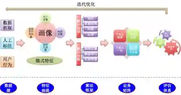 先介绍一下构建一套完善的推荐系统涉及到的主要业务流程及核心模块,具体流程如下图,下面分别介绍各个模块: