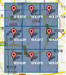 字符串越长,表示的范围越精确。如图所示,5位的编码能表示10平方千米范围的矩形区域,而6位编码能表示更精细的区域(约0.34平方千米)