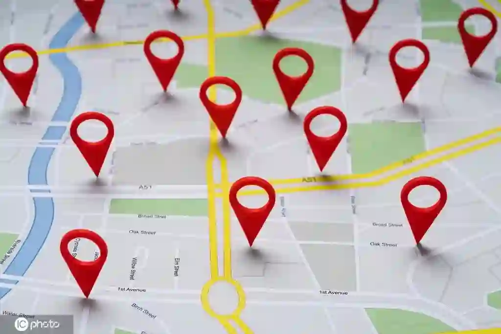 用球面距离公式计算位置与步骤b得到的n个POI的距离(图6c),并保留距离小于50米的POI