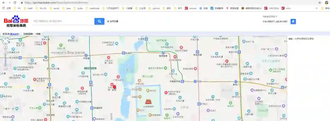 下面以北海公园附近随便一个位置为例介绍GeoHash算法的计算步骤,先用百度 GPS反定位系统查找看下经纬度。