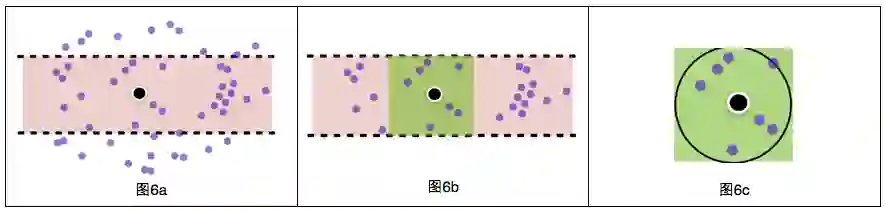 通过B树快速找到某纬度范围的POI(图6a),个数为m(m<40万),复杂度为Log(40万)*过滤函数;