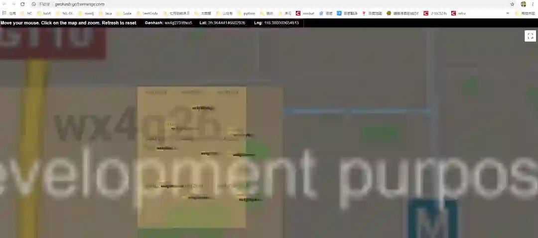 先来两个干货,在线查看 GPS 某个区域的 GeoHash 值。