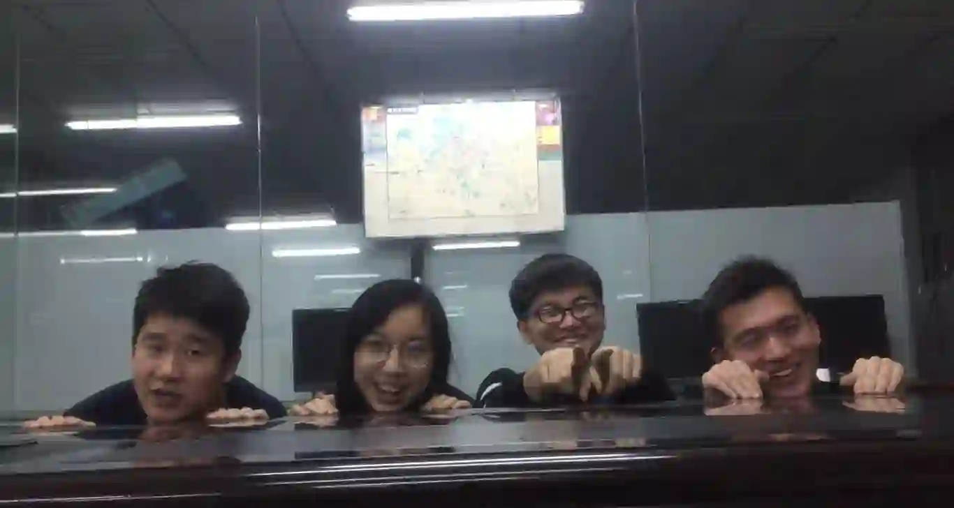 图10:石继豪同学(左一)、刘勇杰同学(右一)与秦兵老师