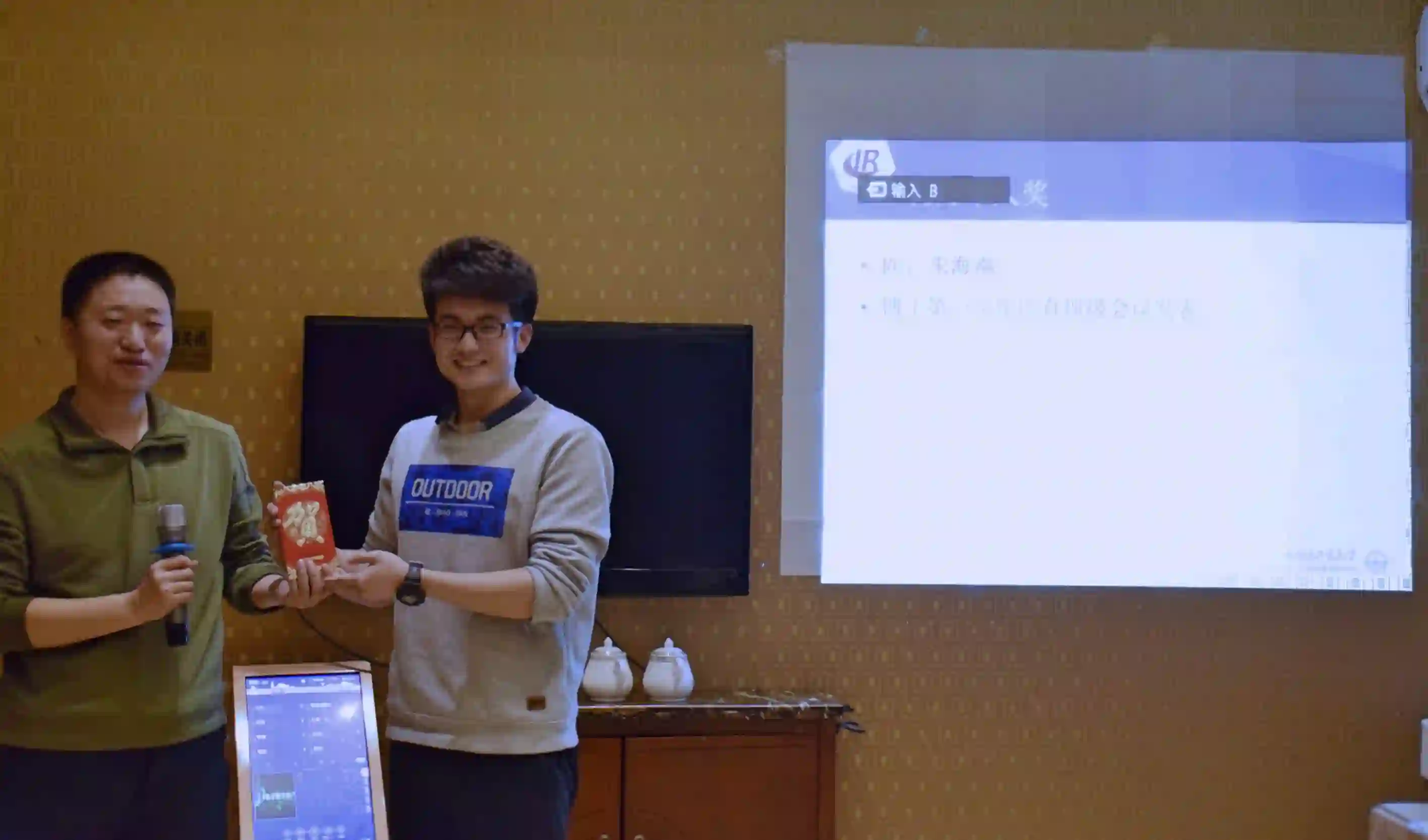 图5:刘铭老师与向政鹏同学(代朱海潮同学领奖)
