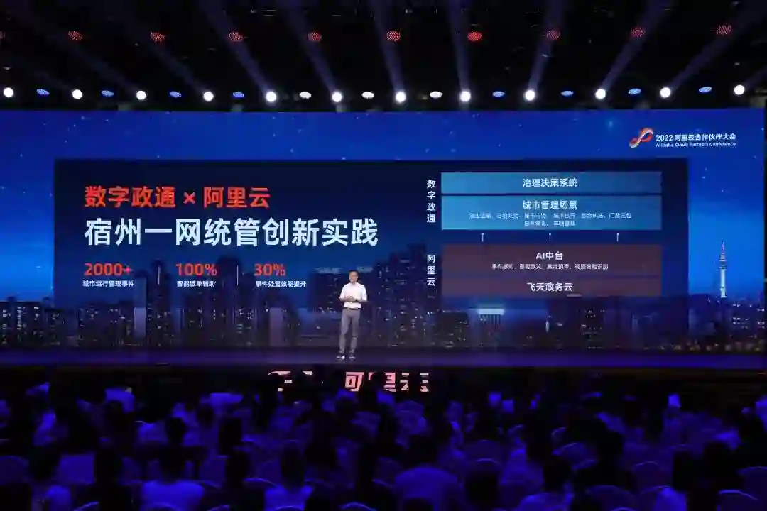 以政务行业“老兵”数字政通与阿里云推出的“一网统管”联合解决方案为例,阿里云提供飞天云平台、封装后的数据智能能力,数字政通则构建上层的应用场景,提炼出包括城市内涝、渣土运输、园林绿化等2000多个标准事件。这一解决方案目前已在安徽宿州等城市落地,让相关部门的事件处置效率提升了30%。对于解决方案向全国的推广,数字政通总裁王东很有信心。