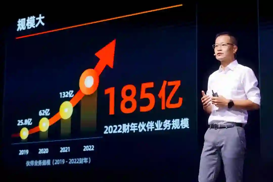 这是阿里云在7月13日的2022合作伙伴大会上公布的一个关键数据。上一财年,合作伙伴带来的业务规模达185亿,四年增长超7倍。