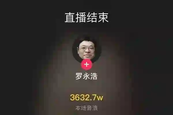 比如顶级网红罗永浩的首次直播带货,光用户打赏的音浪就高达三千多万,合计人民币三百多万。