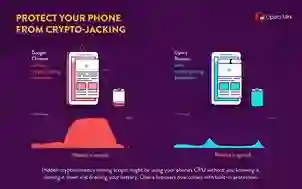 如前文所述,黑客可以通过非法入侵智能手机来进行“偷矿”。幸运的是,Opera 同样可以保护我们的手机。Opera 和 Opera Mini 也可以通过拦截广告的方式阻止“偷矿”程序在安卓设备上的运行。