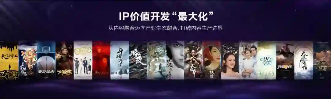 含《庆余年》、《将夜》、《武动乾坤》、《斗破苍穹》,《黄金瞳》、《扶摇》和《凰权·弈天下》等优质IP大作剧集。