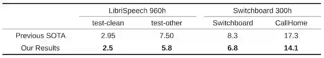 作者们也为这种方法的出色表现感到惊讶,甚至于,以往在 LibriSpeech和 Switchboard 这样较小的数据集上有优势的传统语音识别模型也不再领先。