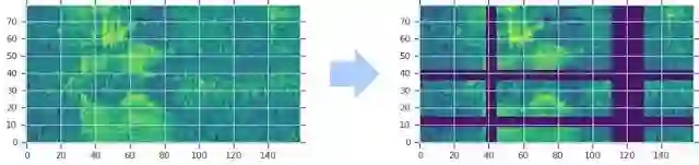 对于传统语音识别系统,音频波形在输入网络之前通常都需要编码为某种视觉表示,比如编码为光谱图。而传统的语音数据扩增方法一般都是在编码为光谱图之前进行的,这样每次数据扩增之后都要重新生成新的光谱图。在这项研究中,作者们尝试就在光谱图上进行数据扩增。由于直接作用于网络的输入特征,数据扩增过程可以在网络的训练过程中运行,而且不会对训练速度造成显著影响。