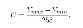 作者先把图像从RGB转到YCBCR,然后对于每个patch(估计是用了划窗的patch?),计算C的值,对比度。对比度低的,说明图像细节信息少,可能比较平滑,去掉,不用于训练。Ymax and Ymin denote the 99% and 1% value of the Y channel。公式如下: